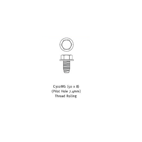 Mild Steel galvanised Hex head, thread rolling screw, suitable for use with C100MG (50 x 8mm), Pilot hole of 7.4mm required